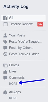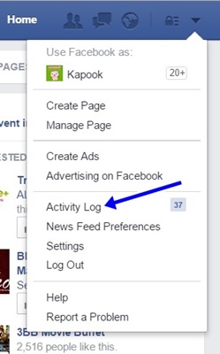 1. คลิกที่ปุ่มลูกศรมุมขวาบนสุดของหน้าเว็บเฟซบุ๊ก แล้วเลือก Activity Log (บันทึกกิจกรรม)